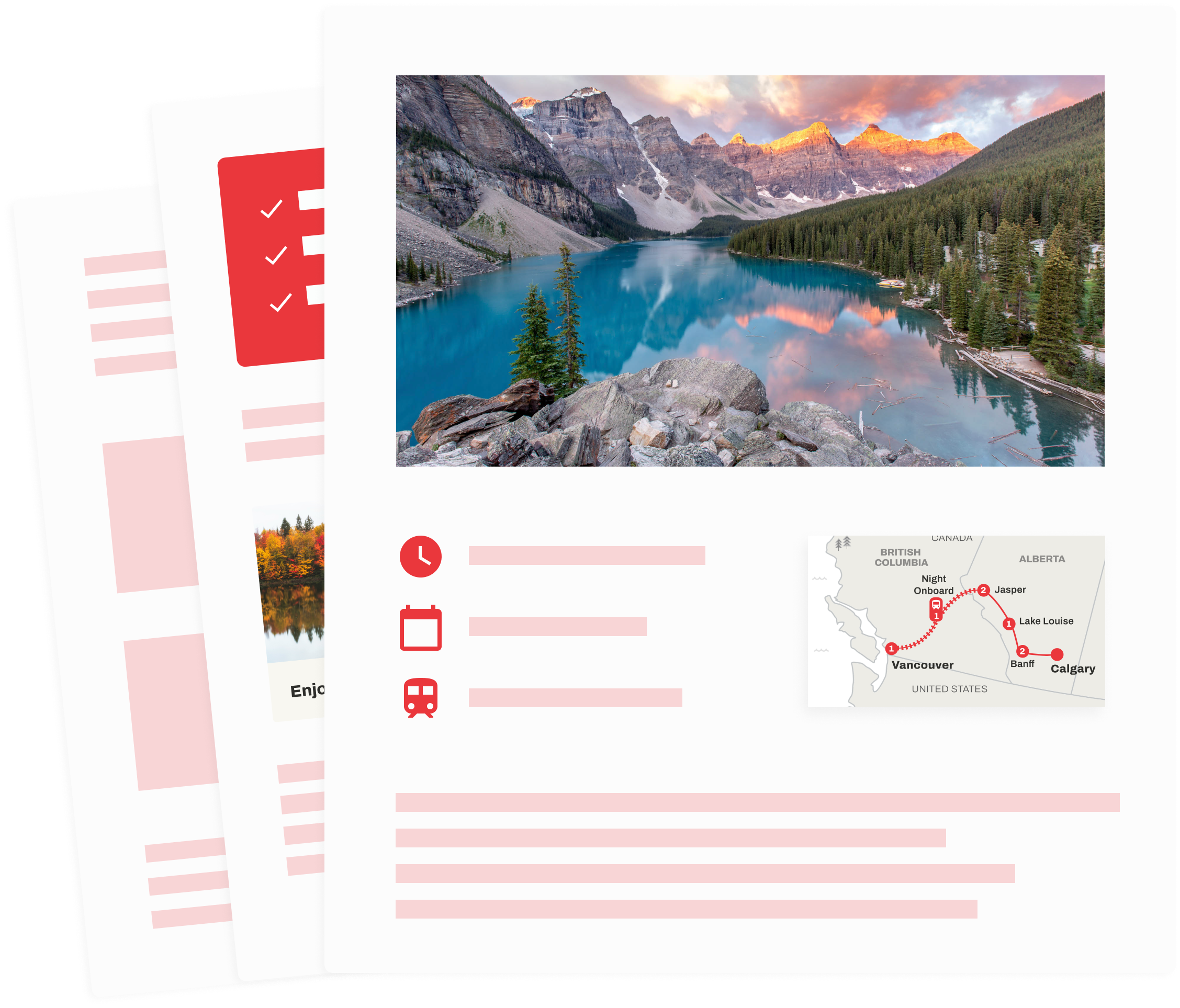 Once you’re happy with the trip plan, we’ll book all the components of your Canadian journey. We’ll send you confirmations, a detailed travel itinerary, and local travel guides.